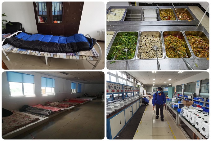 閉環(huán)管理期間,園區(qū)內(nèi)每天多次進(jìn)行全面的消殺消毒,員工工作時全程佩戴口罩,盡量減少園區(qū)內(nèi)人員交叉接觸;生活上,公司為駐園區(qū)員工準(zhǔn)備了生活用品和可口豐富的餐食,盡可能為員工提供舒適、便捷的生活保障。