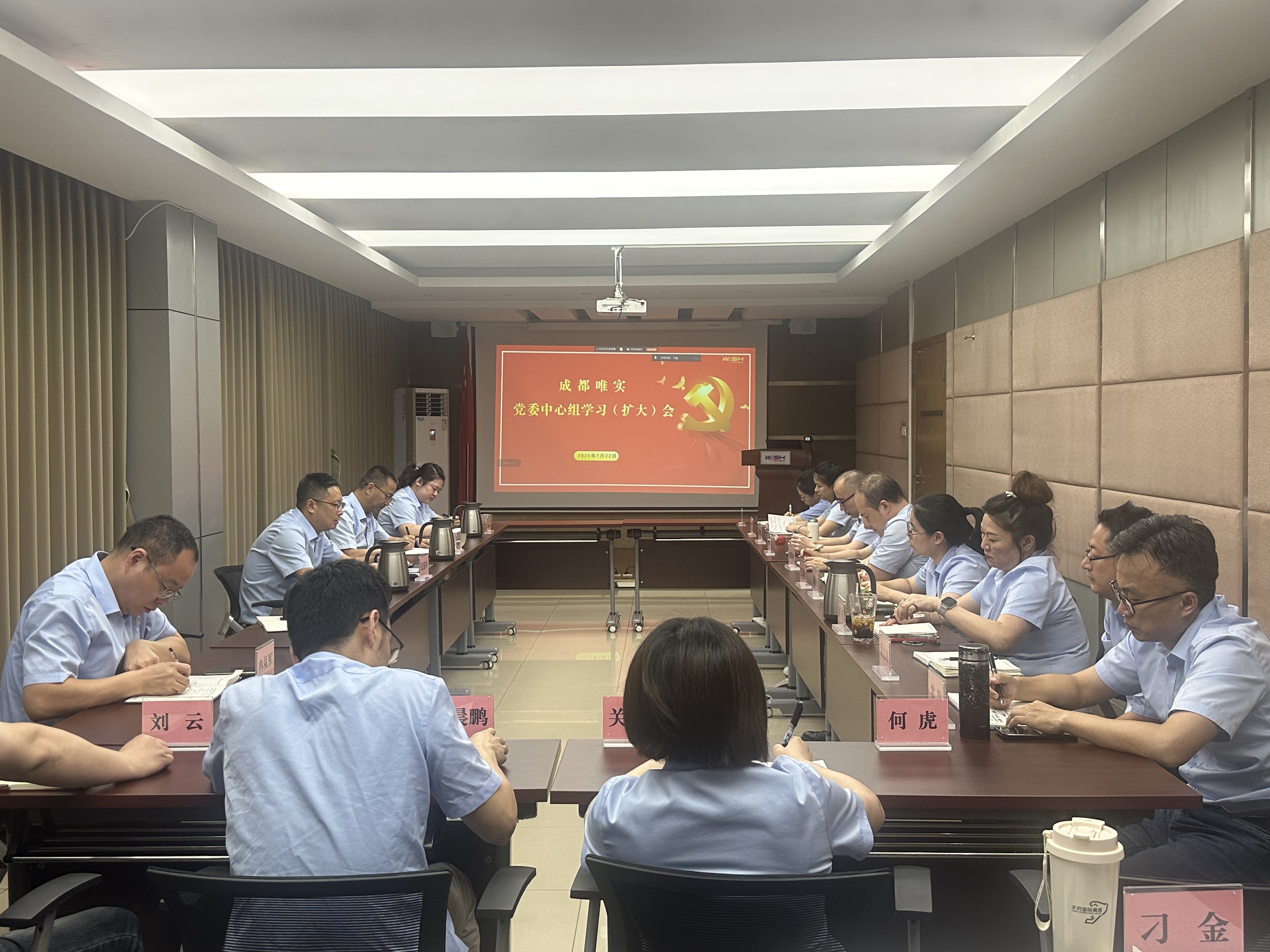 2025年7月22日,成都唯實召開黨委中心組學習(擴大)會,會議由黨委書記、董事長張海軍主持,公司兩委委員、全體管理干部、各黨支部書記及委員、持股公司負責人參加學習。