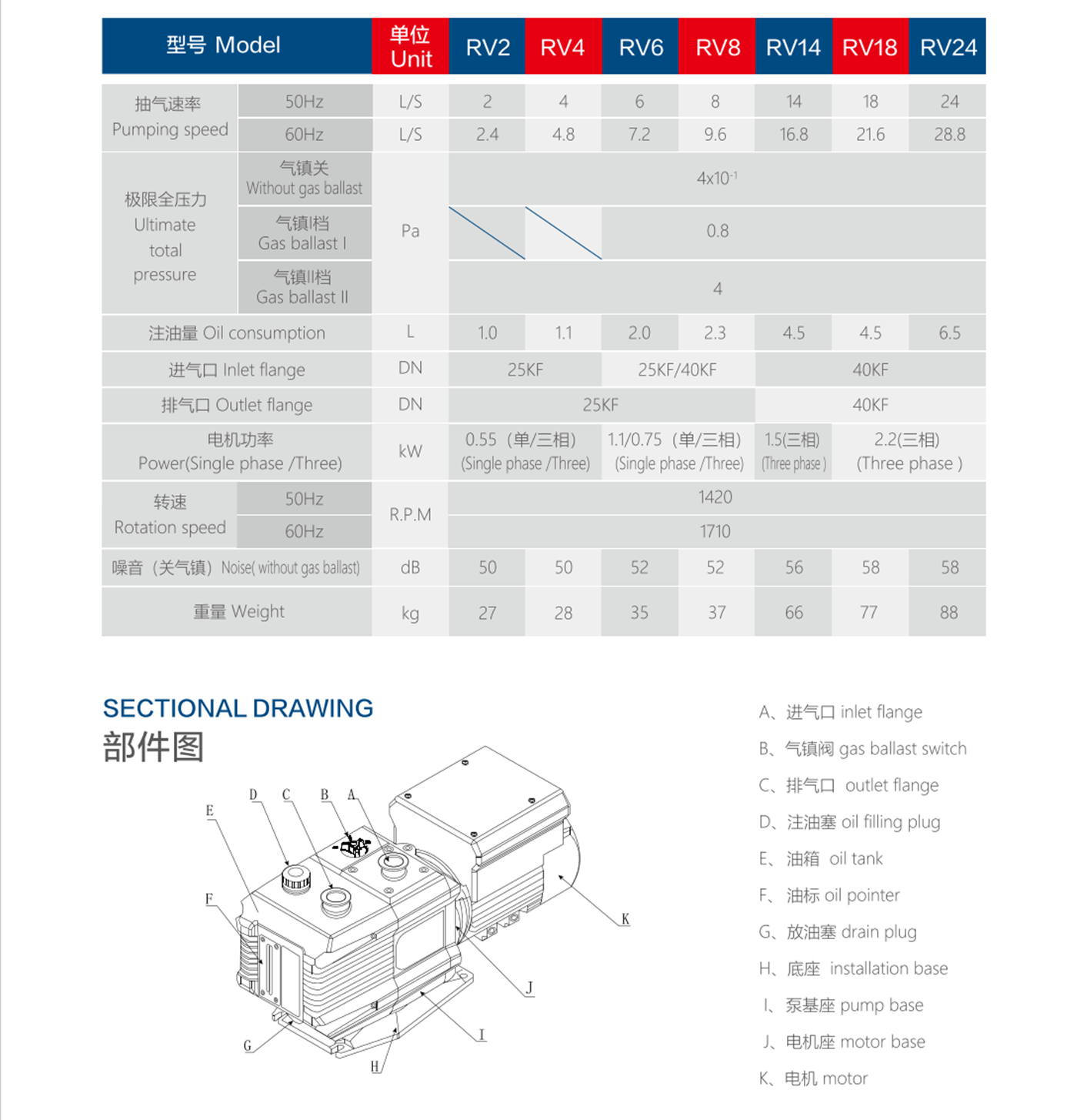 本公司生產(chǎn)的 RV 系列七種規(guī)格的直聯(lián)高速旋片式真空泵,它是真空應(yīng)用領(lǐng)域中最基本的真空獲得設(shè)備之一,其廣泛用于需要獲得高、低真空環(huán)境的科研、教學(xué)、真空應(yīng)用設(shè)備的配套、電子工業(yè)及半導(dǎo)體工業(yè)的生產(chǎn)線配套、彩色顯像管排氣生產(chǎn)線、真空冷凍干燥、分析儀器、電光源生產(chǎn)等需要真空環(huán)境的作用領(lǐng)域。本泵可單獨使用,也可作為擴散泵、羅茨泵、分子泵等的前級泵使用。本泵不得用于抽除塵埃及腐蝕性、易爆性氣體;不得作為壓縮泵或輸送泵使用;不適用于在大氣壓附近連續(xù)運轉(zhuǎn)。本泵具有極限真空度高、噪音低、不漏油、不噴油、造型美觀等特點, 采用防反油止逆閥系統(tǒng)、壓力油循環(huán)系統(tǒng)、方便的氣鎮(zhèn)閥控制等結(jié)構(gòu),并以先進(jìn)的性能、可靠的質(zhì)量為用戶提供優(yōu)質(zhì)的服務(wù)。